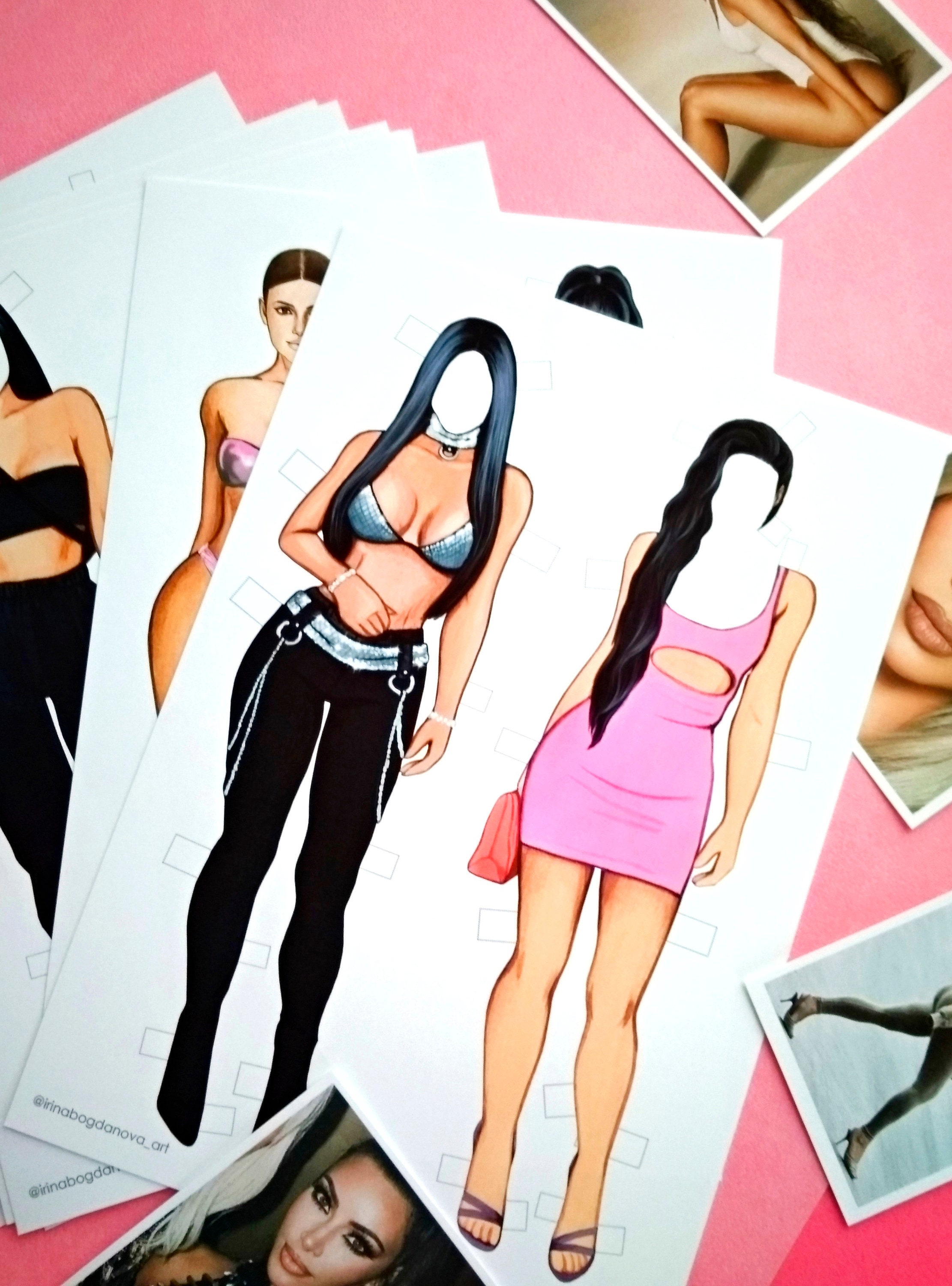 Kim Kardashian Paper Doll Dress Up Doll Celebrity Doll Etsy