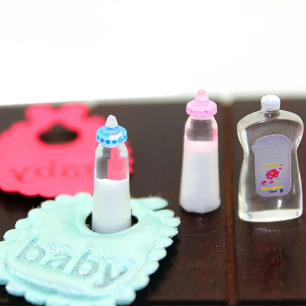 5pcs Set 1 12 Dollhouse Miniature Nursery Accessory Gift Shampoo Bibs Baby Bottles Set For Barbie Dolls Aliexpress