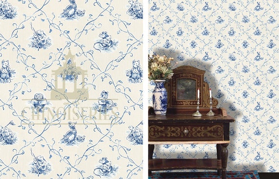 Dollhouse Miniature Blue Beatrix Potter Peter Rabbit Wallpaper 1 12 Nursery Ebay