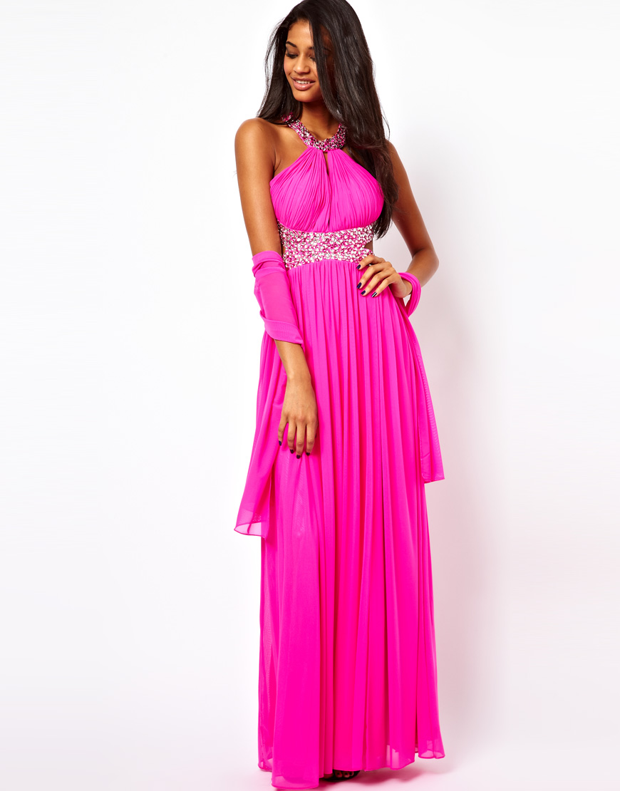 Forever Unique Halter Maxi Dress With Embellished Waist In Pink Lyst