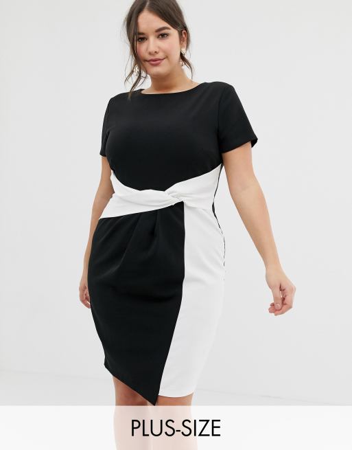 Paper Dolls Plus Bodycon Midi Dress In Colour Block With Twisted