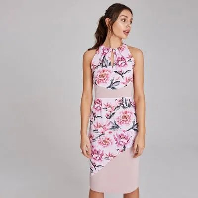 Paper Dolls Pink Saunders Blush Floral Print Bodycon Dress 16