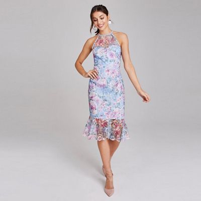 Paper Dolls Multicoloured Mews Blue Floral Midi Pencil Dress 14