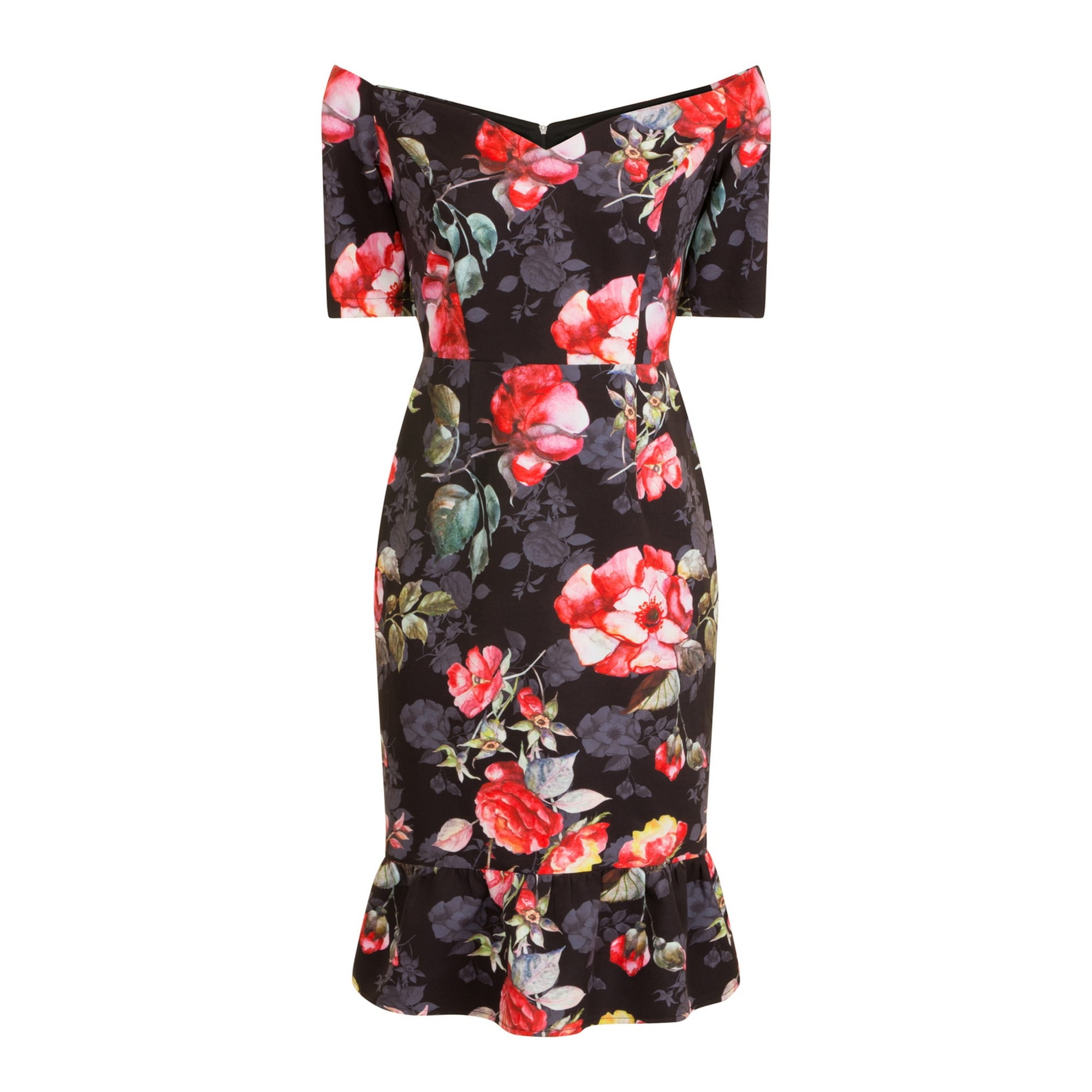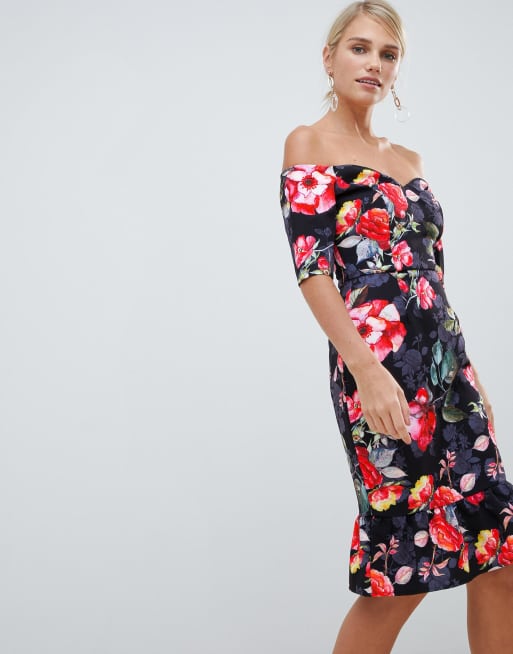 Paper Dolls Bardot Pencil Dress In Floral Print Shopperboard