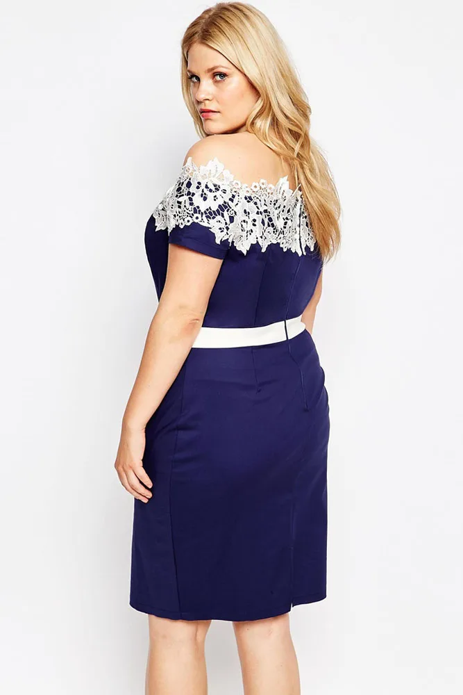 Hot Selling Contrast Lace Off Shoulder Pencil Dress Lc60618
