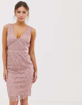 Shoptagr Paper Dolls V Neck Lace Pencil Dress In Dusky Pink By