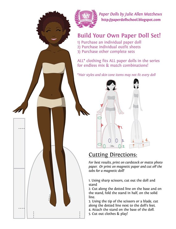 Build Your Own Set Instant Download Paper Doll Dark Skin Etsy