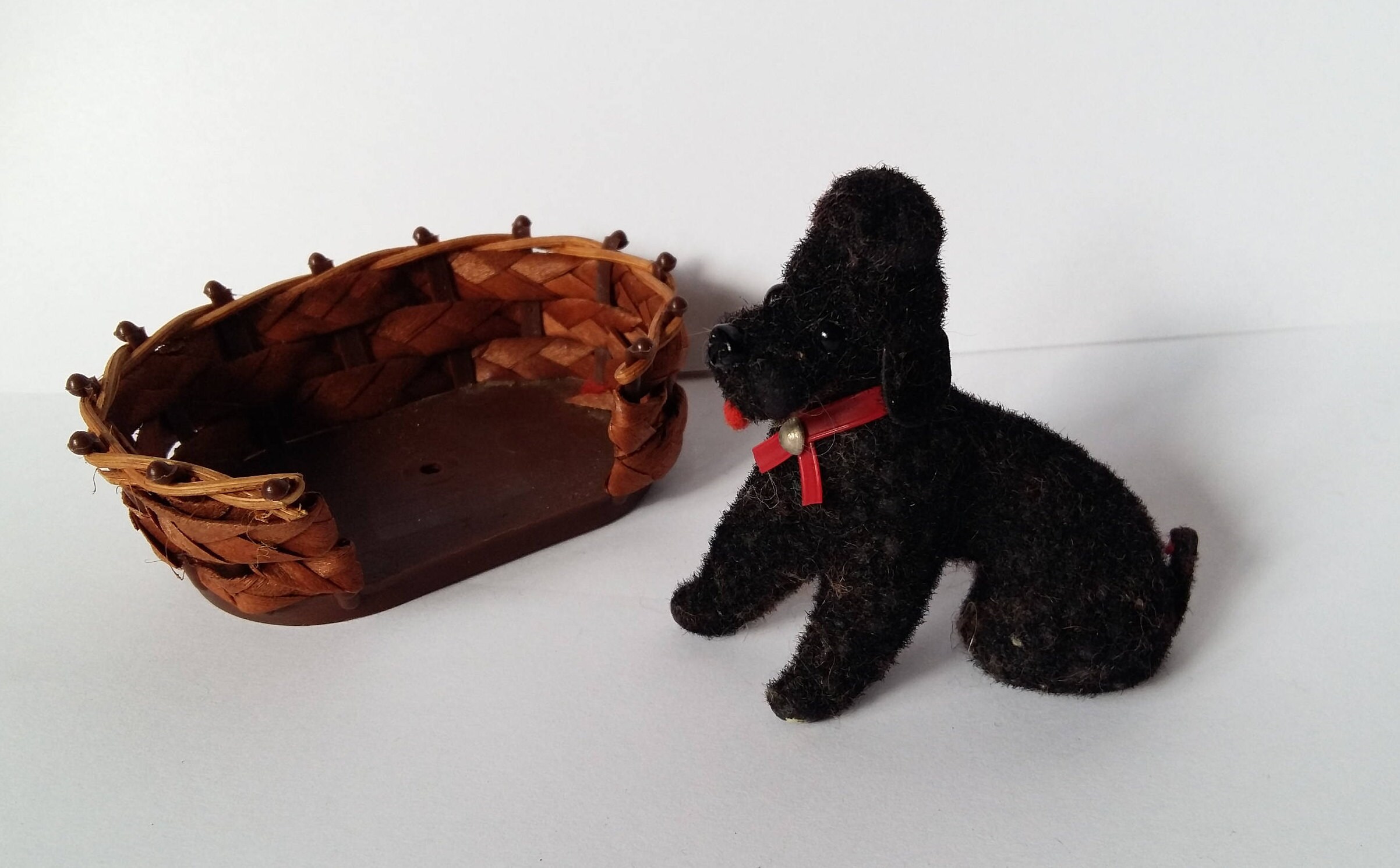Vintage German Flock Covered Poodle And Basket Doll House Etsy