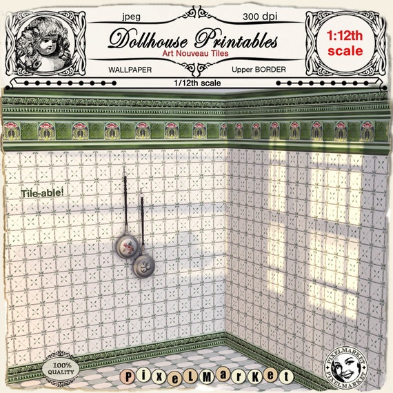 Art Nouveau Dollhouse Printable Wallpaper W Border Victorian Etsy
